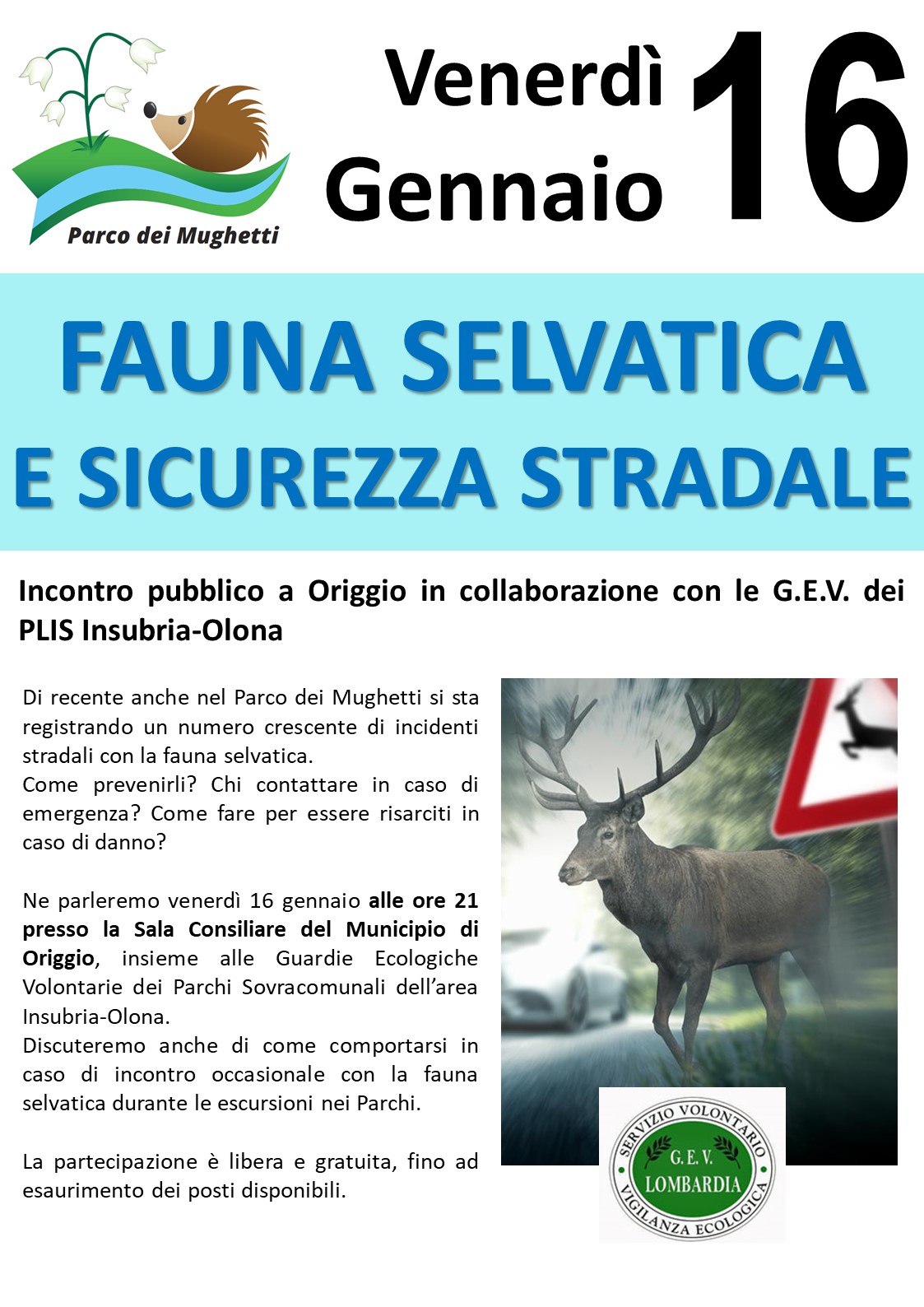 Serata informativa organizzata dal Parco Mughetti con la collaborazione delle G.E.V. dei Plis Insubria Olona VENERDI 16 GENNAIO ORE 21 SALA CONSIGLIARE