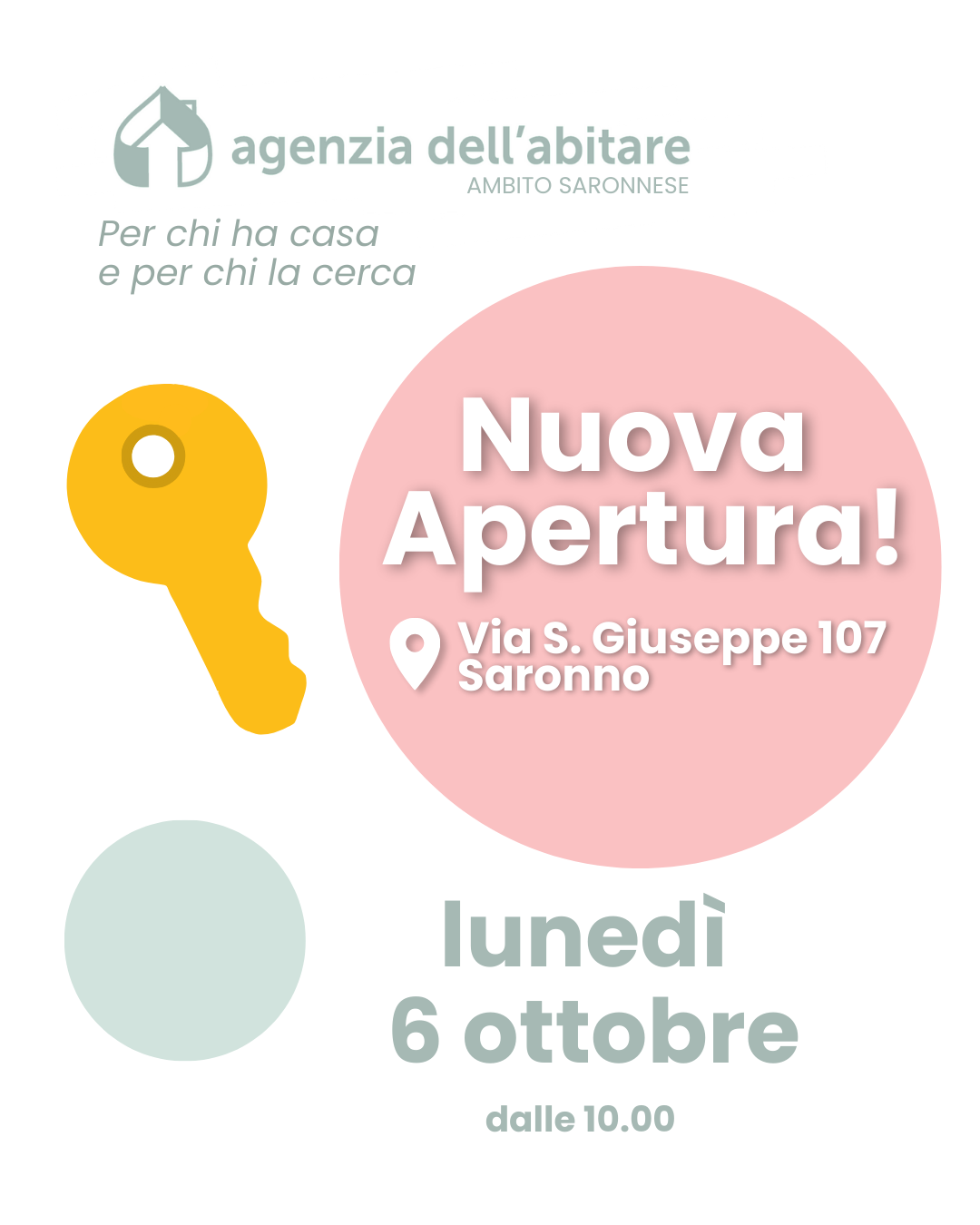 Prende ufficialmente il via presso i locali di via San Giuseppe 107 a Saronno, la nuova Agenzia dell'Abitare del Saronnese, un nuovo importante servizio gratuito, promosso dai sei Comuni dell’Ambito Territoriale Sociale del Saronnese.
