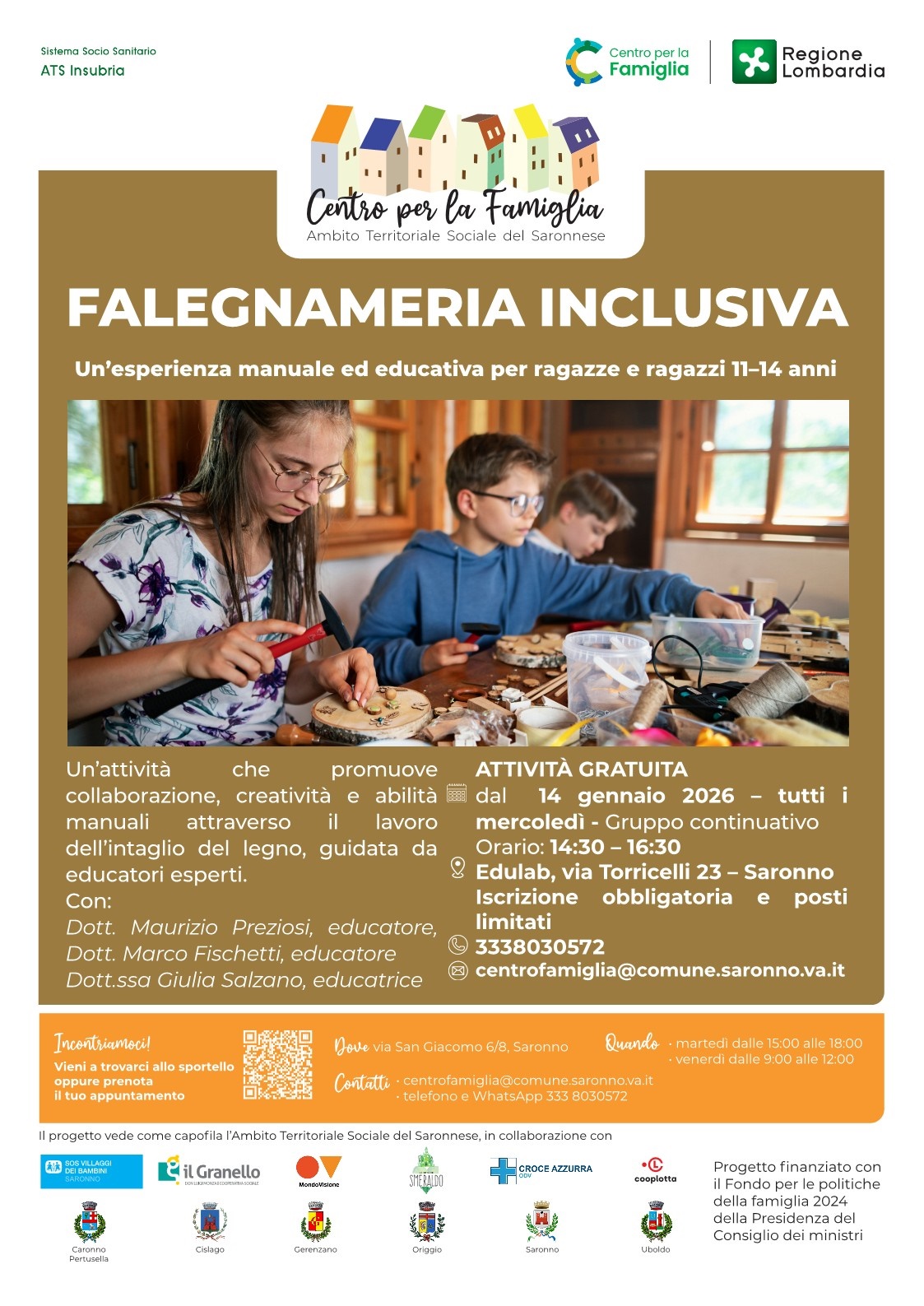Si pubblicano tre iniziative del Centro per la famiglia: Emozioni in gioco, Genitori in campo e Falegnameria inclusiva.